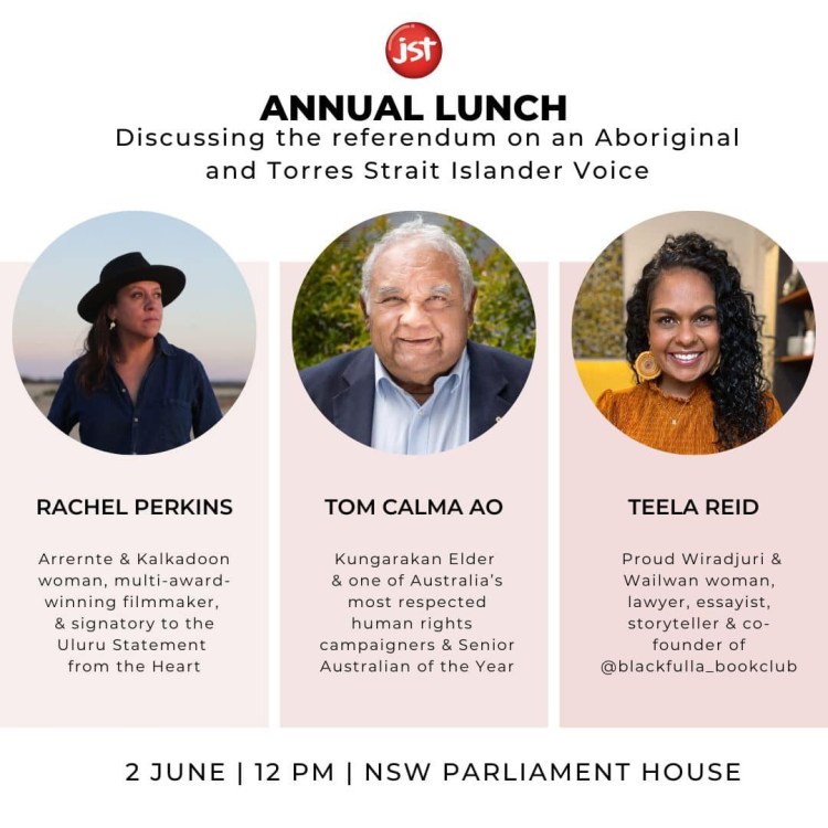 In 2023, the Annual Fundraiser Lunch focused on the referendum for an Indigenous Voice to Parliament. Our speakers included Tom Calma AO, Rachel Perkins and Teela Reid.