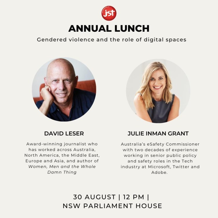 The 2024 Annual Fundraiser Lunch featured speakers Julie Inman Grant and David Leser, in a panel discussion looking at gendered violence and digital spaces.